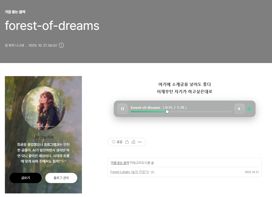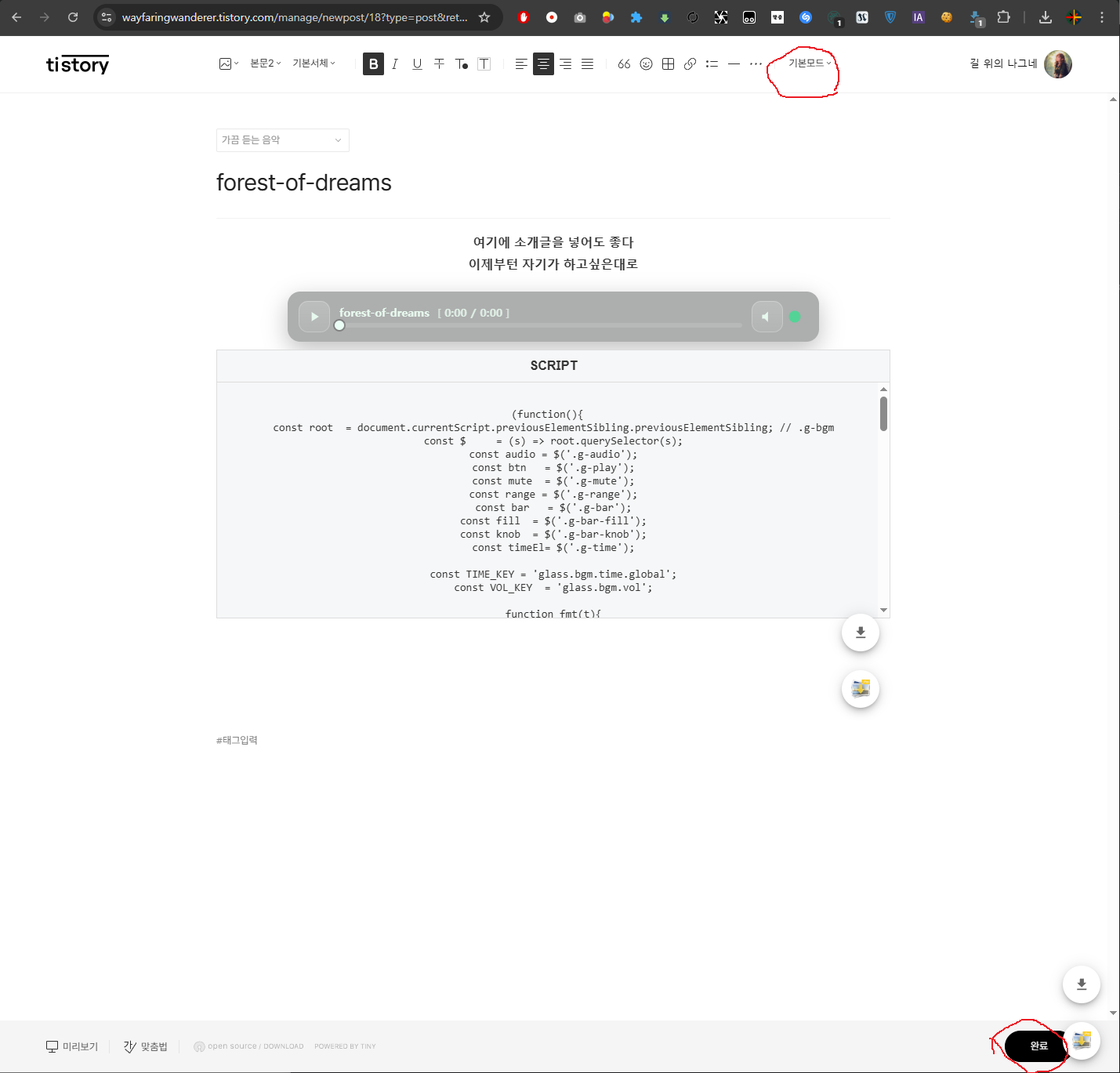 티스토리에 음악을 전체배경음 말고