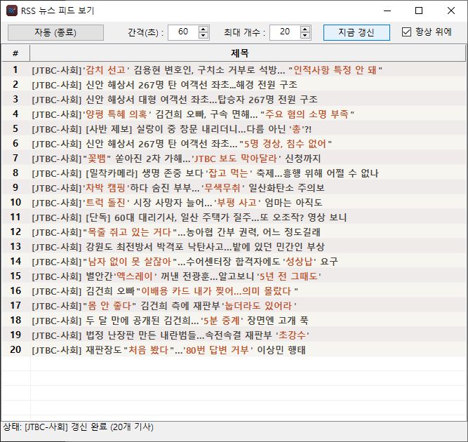 실시간 뉴스 확인용으로 가볍게 만든 툴입니다.