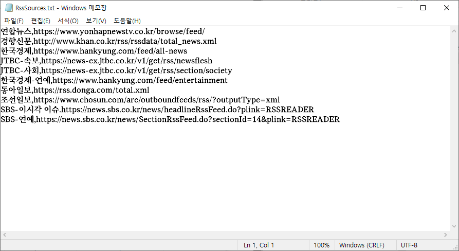 (중요) RssSources.txt 수정할때 언론사,주소형식을 맞춰주어야함